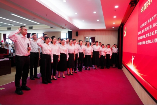 会上,在医院党委曾杨滨书记的带领下,预备党员进行入党宣誓,在铮铮誓言中许下了坚定的承诺,表达了党员的责任和担当。全体党员与他们一起重温入党誓词,更坚定了理想信念,重新感悟中国共产党人的信仰和为民服务的初心。