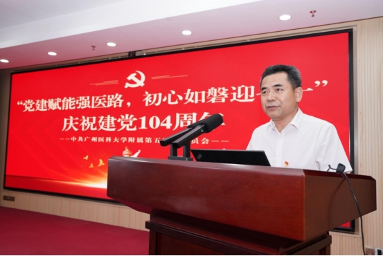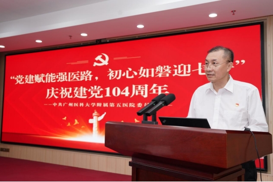 峥嵘百年路,启航新征程。在庆祝中国共产党成立104周年即将来临之际,为深情回顾党的光辉历程,进一步激发全院党员干部的爱党爱国热情和干事创业的蓬勃动力,广医五院党委组织开展一系列主题鲜明、内涵丰富的庆祝活动,以实际行动向党的生日献上了一份厚礼。