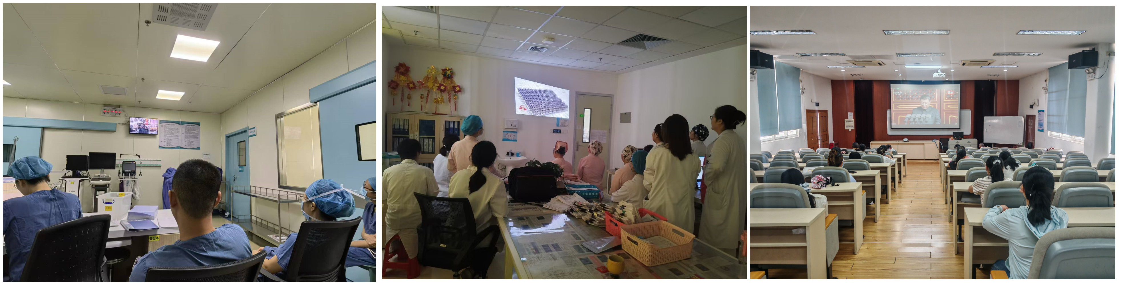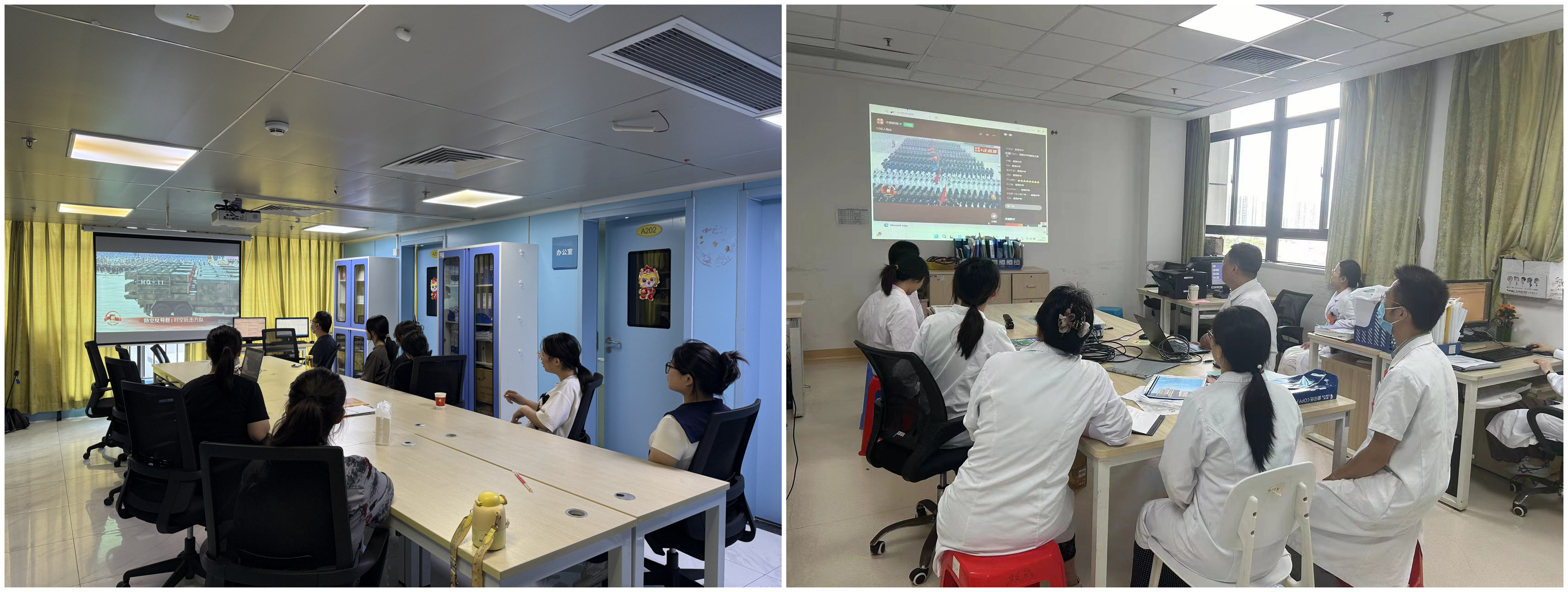 与此同时,为确保医疗服务和患者安全,坚守在一线岗位的广大临床、医技科室干部职工,也以高度的政治热情,通过科室电视、网络直播等多种方式,在工作间隙、轮休时间,积极收看了阅兵盛况。妇产科、医学检验科、放射治疗科、各病房诊室……处处都能感受到大家关注盛典、心系祖国的热烈氛围。虽岗位不同、形式各异,但全院职工对祖国的赤诚热爱和对历史的深切缅怀凝聚成同一个心声。