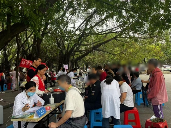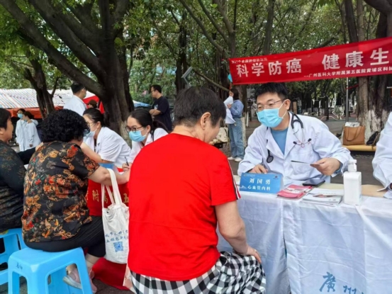 为深入践行健康中国战略,切实将优质医疗服务送至基层,在五一国际劳动节来临之际,广州医科大学附属第五医院内科第一党支部、内科第三党支部、医技党支部联合组建党员先锋队,于4月26日走进黄埔区夏港街道普晖社区,开展"科学防癌 健康生活"主题义诊活动。通过"党建+健康服务"模式,为社区居民送上"健康大礼包"。