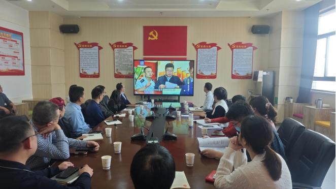 全体与会人员集中观看电视专题片《一步不停歇 半步不退让》第一集《纠风治乱为民》