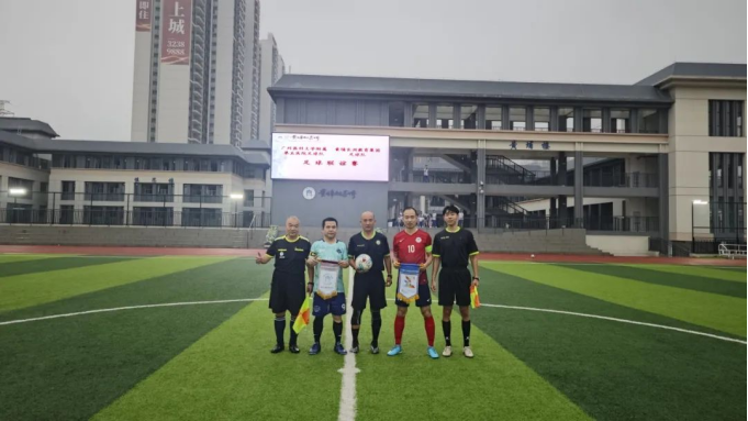 大雨倾盆,阻挡不了足球健儿奔向绿茵场的脚步!5月28日下午六点,广州医科大学附属第五医院职工足球协会与黄埔军校纪念中学联合举办的“健康同行,友谊长存”足球友谊赛,在瓢泼的“龙舟水”的协奏曲中拉开了序幕。广医五院党委副书记、工会主席江先汉,黄埔军校纪念中学书记朱欣川、校长邝志坚、副校长莫化南,参与了本次活动。