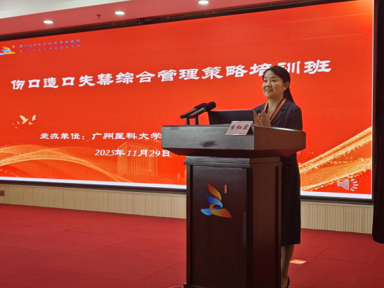 本次学习班特邀广州市红十字会医院陈丽映主任护师(国际伤口治疗师)进行专题授课。作为伤口护理领域的资深专家,陈主任结合多年临床与科研经验,系统阐释了护理标准从制定到落地的全过程,生动诠释了“标准源于临床,亦服务于临床”的核心理念。