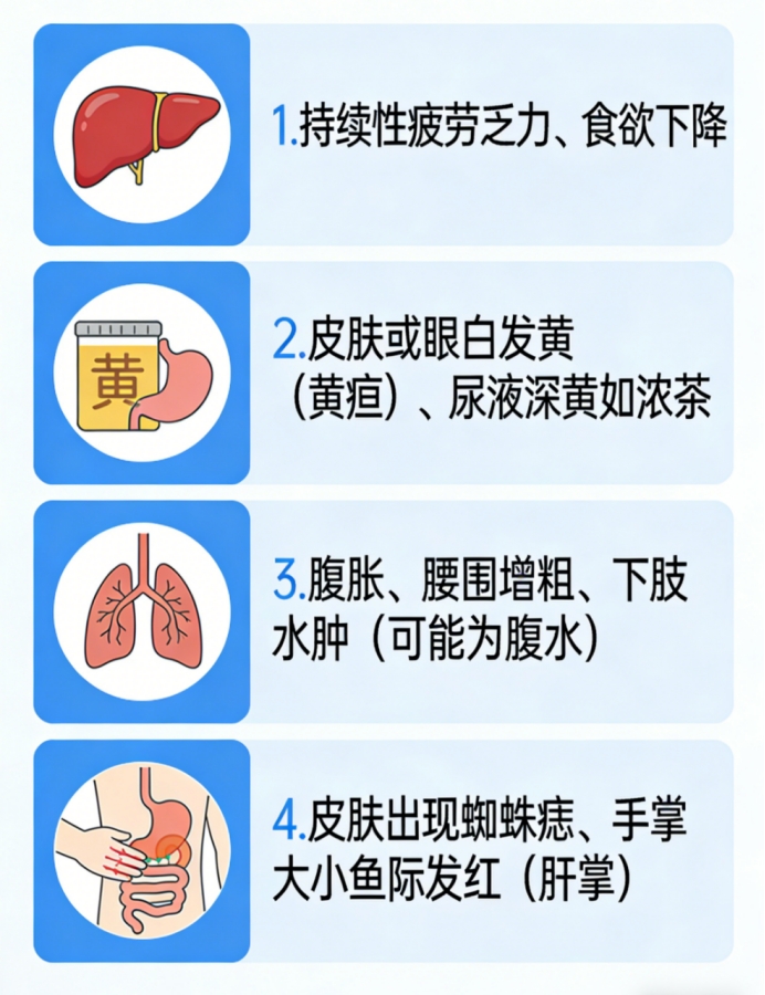 肝脏虽然沉默,但并非无迹可寻。出现以下情况请立即就医 :