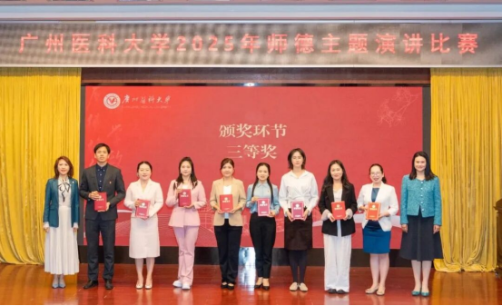 为深入学习贯彻习近平新时代中国特色社会主义思想,大力弘扬教育家精神,激励广大教师践行立德树人初心使命,广州医科大学于2025年12月31日下午在番禺校区举行了首届师德主题演讲比赛。经过激烈比拼和评委现场评审,广医五院选手王若璐获比赛三等奖。
