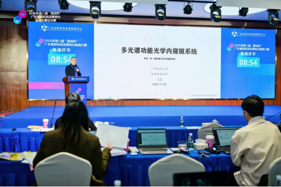12月15日,由广东省教育厅主办的第八届“高创杯”广东高校科技成果转化路演大赛圆满落幕。在激烈的竞争中,由广州医科大学第五临床学院王松老师带领的团队创新项目——《多光谱功能光学内窥镜系统》,从全国数百个优秀项目中脱颖而出,成功斩获大赛铜奖!充分展示了广州医科大学教师代表在科技创新与临床转化方面的扎实功力。