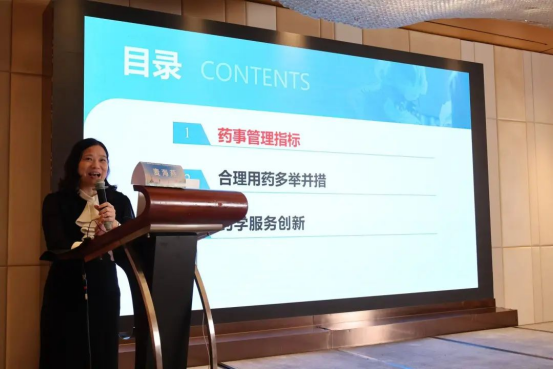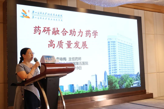 广医五院李咏梅主任分享了药学部在学科建设、公益服务及主要业绩方面的成果,展示“医教研管”多维融合助力药学发展的路径。