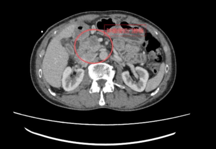 患者术前CT(红圈内为肿瘤病灶)