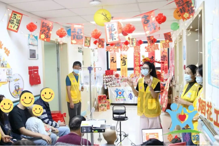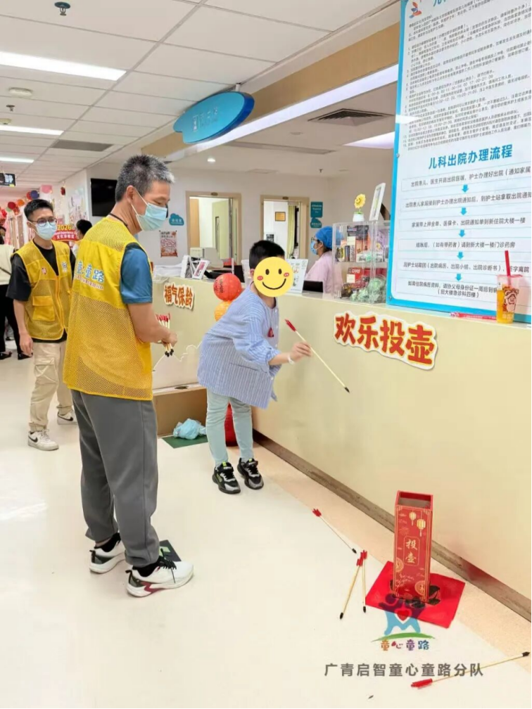 与此同时,儿童肿瘤科携广州青年志愿者协会童心童路分队为儿童肿瘤患者及家属开启欢乐摇汤圆、妙剪生花、欢乐投壶、百福拓乐等一系列活动。游戏之间,孩子们暂忘病痛,家长重展笑颜,病房中流淌着难得的轻松与欢愉。儿童肿瘤科与童心童路分队用一场场活动,为孩子们撑起一片晴朗的天空——那里有汤圆的甜、剪纸的美、投壶的乐、拓印的福,更有永不熄灭的童心与勇气。