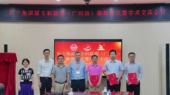 2025年10月11日上午,长三角泌尿外科联盟(广州站)揭牌仪式暨学术交流会在广医五医院举行。广医五医院党委书记曾杨滨、副书记江先汉,长三角泌尿专科联盟秘书长、上海交通大学医学院附属仁济医院刘毅东教授、仁济医院吕向国教授、王林教授,以及广医五院相关科室负责人出席会议。会议由广医五院院长助理、泌尿外科主任徐桂彬主持。