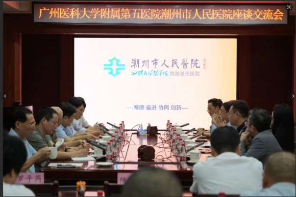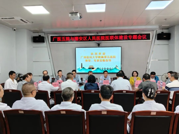 10月21日,在潮州人医医联体工作交流座谈会上,副院长黄毓华表示,将以此次医联体调研指导为契机,依托广医五院技术资源优势,通过深化协作、全面提升服务能力,切实满足潮州群众健康需求。随后,两院临床多专科与就学科建设、新技术开展等方面进行深入交流。广医五院书记曾杨滨强调,医联体建设需多措并举,强化医疗安全规范管理,提升综合服务能力;加强特色专科建设与分级诊疗,优化资源利用效率。潮州人医院长孙光裕表示,自与广医五院开展合作交流以来,我院在泌尿外科、康复医学科、GCP机构建设等多个领域取得显著成效,接下来,两院将继续开展合作交流,携手共进,互惠共赢。同日,广医五院还与广东北斗集团共同召开了医联体建设专题交流会。