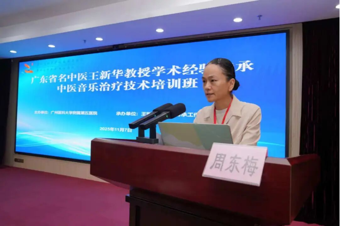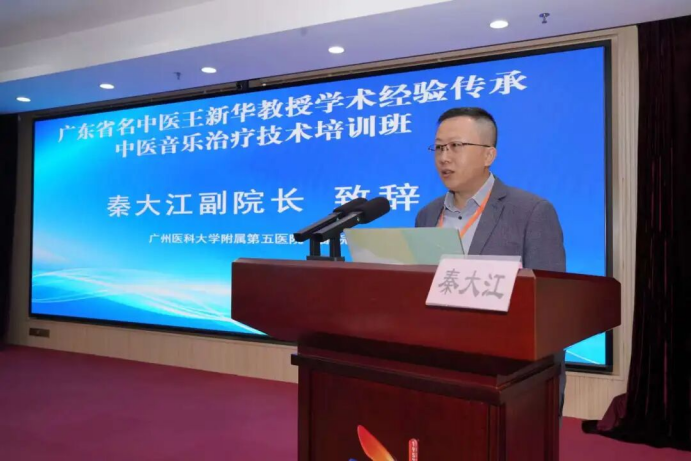 11月7日,广东省名中医王新华教授学术经验传承与中医音乐治疗技术培训班在广州医科大学附属第五医院成功举办。本次培训班由广医五院主办、王新华名中医传承工作室承办,吸引了众多中医药工作者和音乐治疗爱好者参与。广医五院副院长秦大江出席培训班并发表致辞。