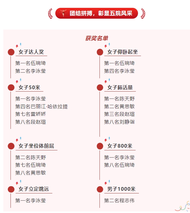 此次体测运动会不仅是对学生身体素质的全面检验,更是对团队凝聚力和意志品质的锤炼。第五临床学院将以此次佳绩为新的起点,继续弘扬体育精神,激励更多学子投身体育锻炼,以强健的体魄和昂扬的斗志,为学院和学校的高质量发展贡献力量!