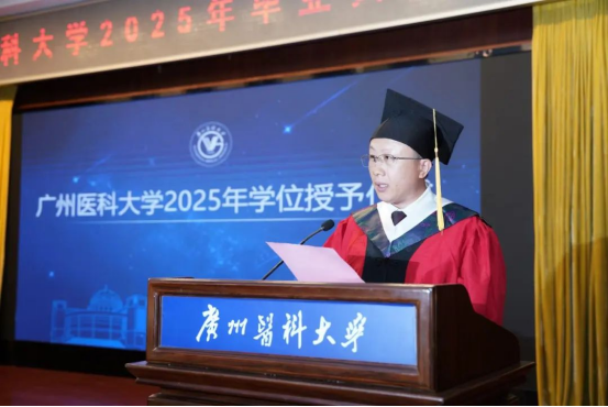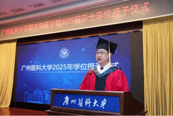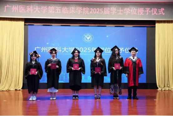 6月25日下午,广州医科大学第五临床学院2025届学位授予仪式在番禺校区举行,101名本科生顺利毕业,踏入人生新阶段。