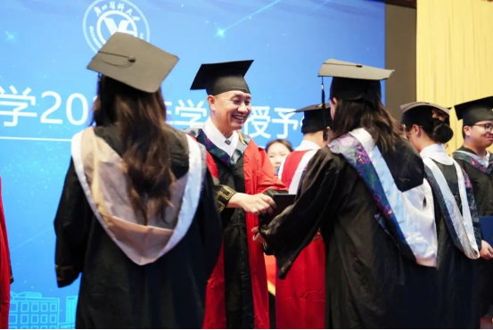 秦大江副院长宣读了授予学位和毕业文件,主礼教授为2025届毕业生逐一拨穗正冠、颁发学位证书并合影留念,共同见证这一庄严而难忘的时刻,为他们的大学时光画上圆满句号。