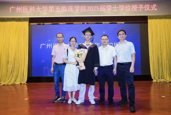 广州医科大学附属第五医院党委曾杨滨书记、党委江先汉副书记、李奕华副院长、秦大江副院长、纪委卢幼君书记,以及第五临床学院教师代表、第五临床学院2025届毕业生及家长出席了本次仪式。