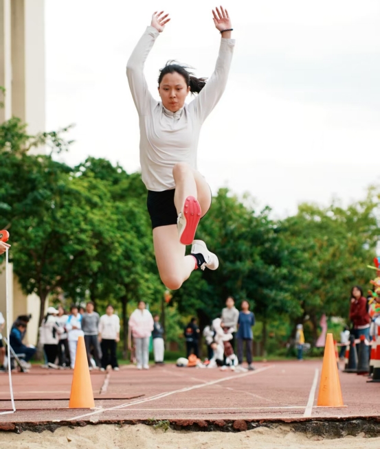 2024级临床医学专业唐钰善同学在女子跳远比赛中,凭借出色的跳跃技巧与稳定的落地表现,一举包揽女子跳远与女子三级跳远双料冠军。