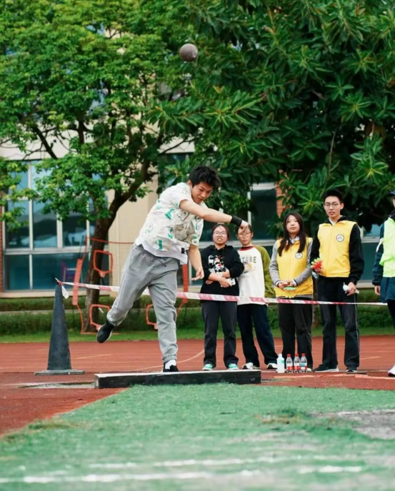 2023级康复治疗学专业的林凯同学在男子铅球项目中突破自我,在力量与技巧的碰撞中奋力投掷,最终以9.46米的成绩斩获季军。