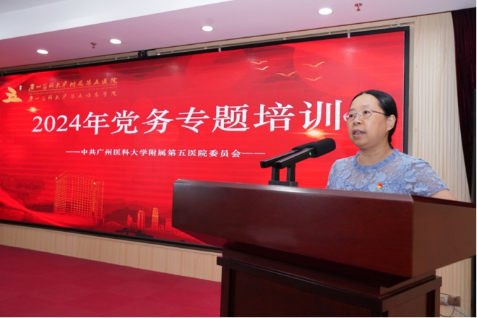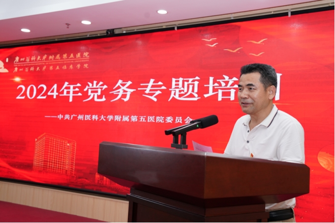 医院党委副书记江先汉致辞,他表示,今天举办此次党务专题培训,旨在进一步提升党务工作者的政治素养、业务能力和工作水平,也是为了促进我院党建工作提质增效,高质量开展党的组织生活和规范发展党员工作流程。