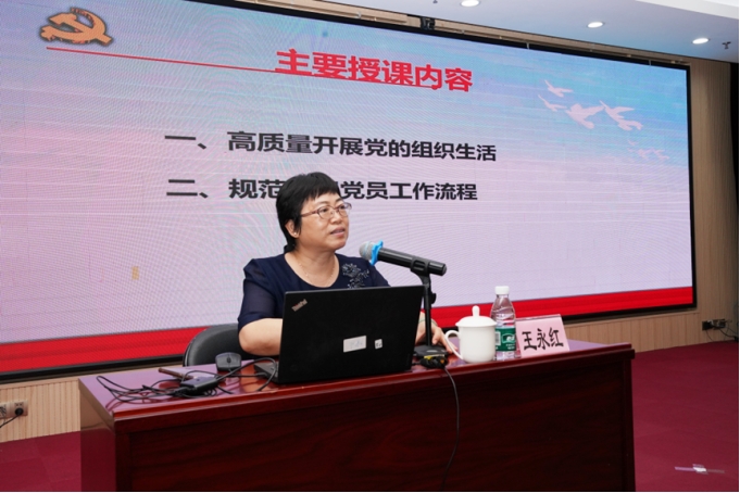 本次培训邀请了原越秀区党校教研部主任王永红进行授课。王永红主任以《基层党支部工作实务——党支部规范化建设与党的组织生活》为题,结合党的二十届三中全会精神,从“三会一课”制度、主题党日、组织生活会、民主评议党员、谈心谈话等方面详细阐述如何高质量开展党的组织生活,并且细致讲解了发展党员5个阶段25个流程的具体规范。