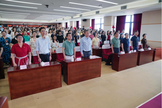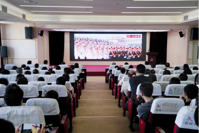当日上午,学术报告厅内气氛庄重而热烈,大家怀着崇敬与期待的心情早早抵达。9时许,阅兵仪式正式开始,中共中央总书记、国家主席、中央军委主席习近平发表重要讲话,深刻阐述了抗战胜利的伟大意义,强调铭记历史、缅怀先烈、珍爱和平、开创未来的重要性,话语坚定有力,深深触动着每一位观看者的心。当激昂的国歌声响起,全体人员自发肃立,齐声高唱,表达对祖国的无限热爱与崇高敬意。