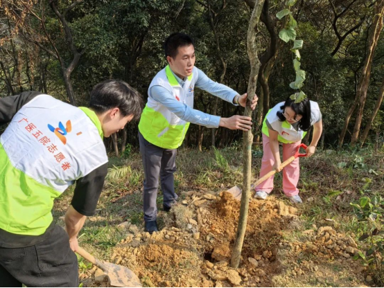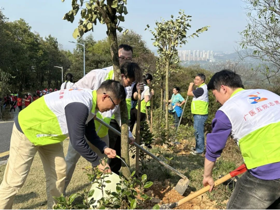 为深入学习贯彻落实习近平生态文明思想,践行“绿水青山就是金山银山”科学理念,积极投身三月“学雷锋”志愿服务月活动,3月12日下午,医院党委组织各党支部以及医院团委青年代表,一行26人共同参与主题为“学雷锋”志愿服务月-“绿美黄埔 青年先行”义务植树志愿行动,以实际行动为全运会营造绿色生态氛围。