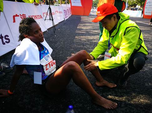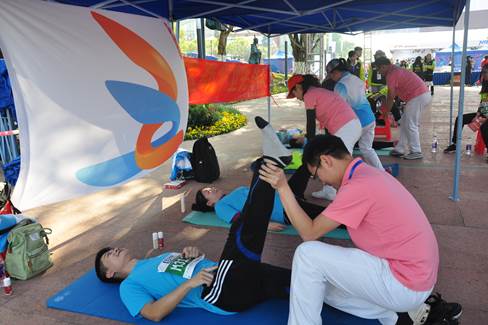 激动人心地比赛开始了,有的选手一路驰骋,英姿飒爽,也有的选手出现了各种身体的不适,我们的志愿者在各个医疗点为他们展开医疗救助。我院也特意组织了一支专业的医疗保障队伍,为比赛保驾护航。