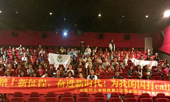 3月17-18号,广州医科大学附属第五医院团委组织了主题为“踏上新征程,奋进新时代!为我的国打call”的爱国主义教育实践活动。全院团员、青年、志愿者和青年文明号集体前往电影院观看了电影《厉害了,我的国》。
