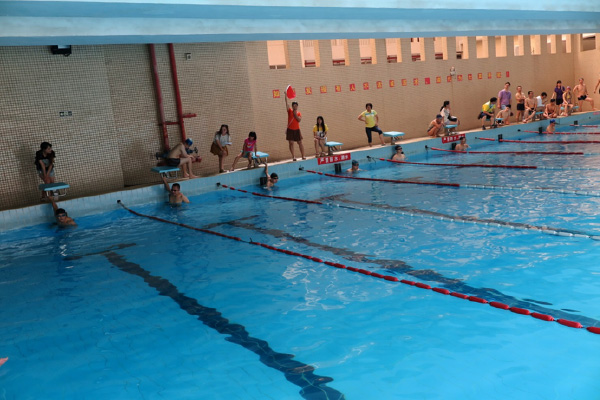 8月8日,适逢我国全名健身日,广东省海运学院游泳馆内热闹非凡、人声鼎沸,由我院工会举办的职工水上运动会火热开赛了!来自八个部门工会的近80多名选手参加了本次比赛。