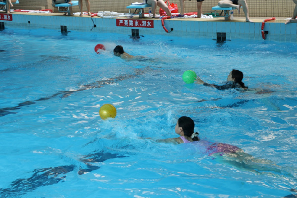 本次比赛由两大项目组成:个人50米蛙泳、混合泳竞赛项目及“水中夹球”、“水中拔河”、“运球接力赛”3种集体水上趣味项目。