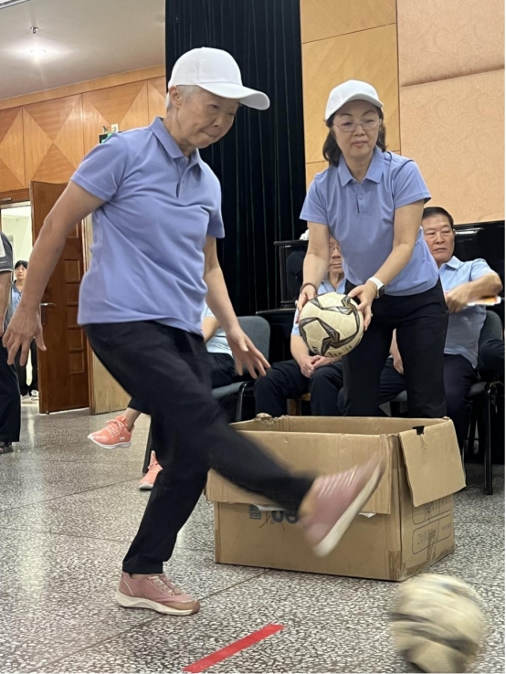 本次运动会以"乐享运动,健康同行"为主题,设置了足球射门、定点投篮、踢毽、简易保龄球和羽毛球五个趣味项目。活动现场气氛热烈欢快,老同志们个个精神抖擞、活力四射,在轻松愉悦的运动氛围中尽情绽放笑容,享受运动的乐趣。
