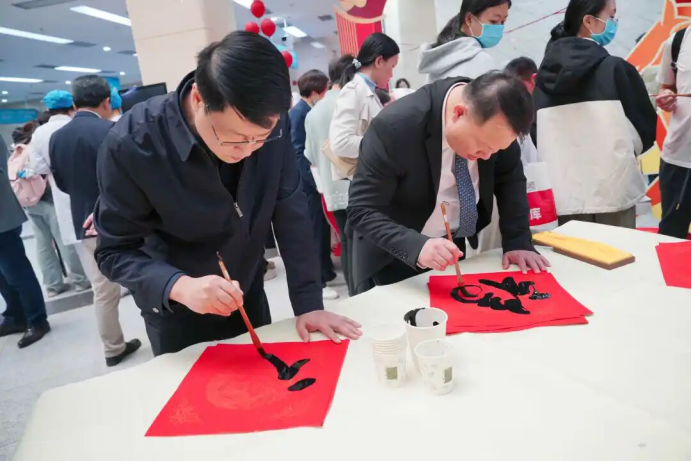 活动现场的挥春送福区,褪下白袍的职工“书法家”们正凝神挥毫、笔走龙蛇,红纸铺展间,一幅幅笔力遒劲的春联、一个个圆润喜庆的“福”字接连诞生;墨香氤氲中,既有对马年新春的美好期许,也有对全体医线同仁默默坚守、无私奉献的敬意。职工和众多病友、家属们有序排队,挑选着心仪的春联与福字,脸上洋溢着满足的笑容。一份份手写的祝福,不仅传递着新春的年味,更传递了医院对职工的深切关怀。