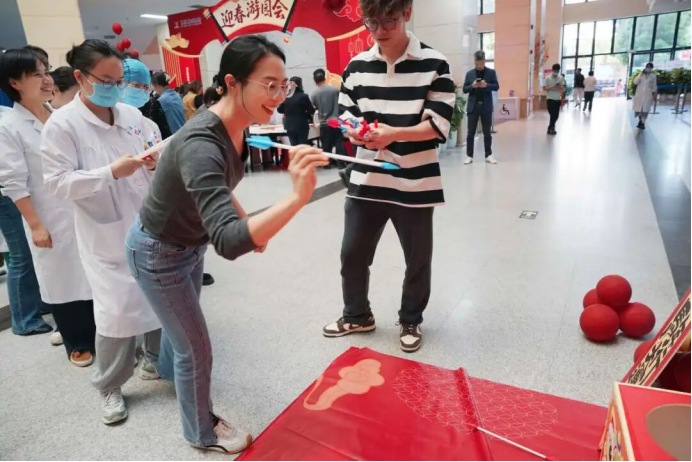 祥瑞迎春至,温情暖医线。2月11日南方小年的下午,广医五院3号楼一楼大堂内年味盈盈、欢声满堂。“喜乐迎春,情暖医线”职工迎春游园活动在此温情启幕。医院领导班子到现场,与职工、患者及家属共迎佳节,致以诚挚问候与新春祝福,为马年注入满满暖意与希望。