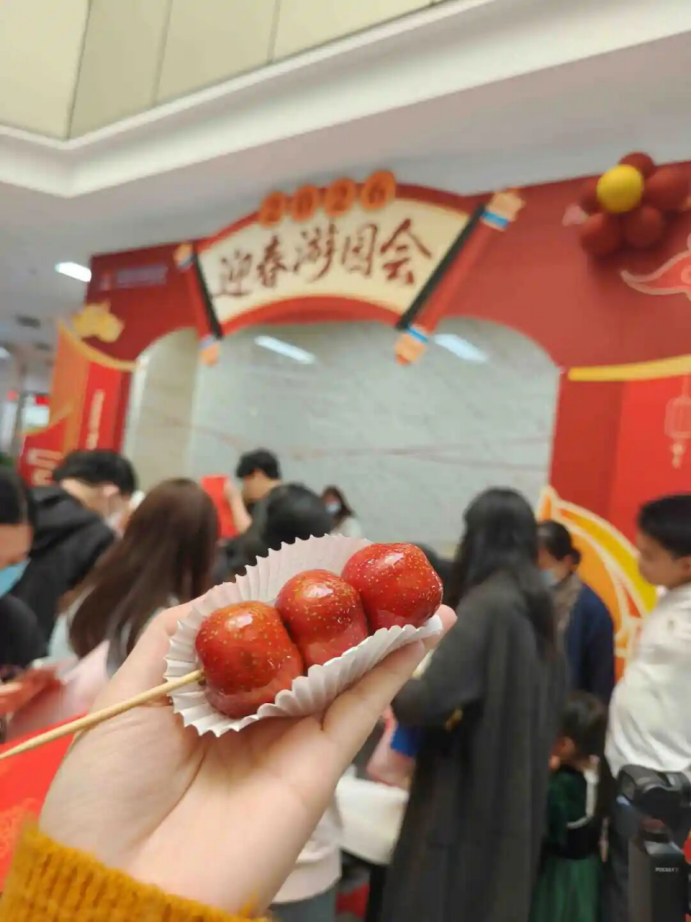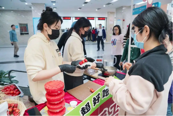 冰糖葫芦区,成为了大家的“童年回忆杀”。新鲜饱满的山楂,裹上晶莹剔透的糖衣,色泽诱人、酸甜可口。职工们手持冰糖葫芦,一口下去,重温儿时的年味,邂逅简单的幸福。
