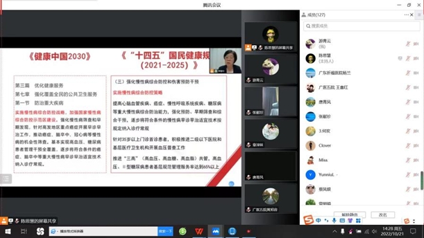 首先由郭慧玲秘书长对慢病管理与延续护理服务最新政策如《健康中国2030》、《“十四五”国民健康规划(2021-2025)》等相关政策的讲解分析,让大家充分认识到实施慢病综合防控管理与延续护理的必要性和战略性意义。