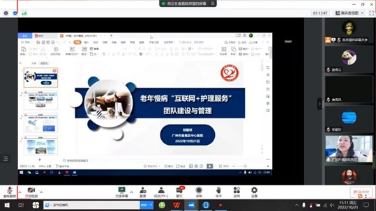 随后,还举办了慢病管理与延续护理实践培训班。本次培训班特邀院内外慢病管理专家倾囊授课,课程内容精彩丰富,从国家政策解析到具体做法分享,受到参会专家与学员的一致好评。因疫情防控要求,本次会议全程以线上进行,与会人员多达140余人。