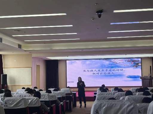 培训中,蔡教授将护理人员作为一个整体人进行了护士、配偶、父母、子女等多重社会角色的剖析,带领大家回忆学习护理的初心,引出了工作、学习、生活的有效融合,提出了临床护理工作常见护理冲突的应对方法等,推崇护理人员柔性处置策略,落脚于同理心为基础的优质护理服务理念,由浅入深、由个人及团队,层层递进。蔡教授的课堂氛围活泼,不断与现场学员互动,增强了培训效果;引用案例生动接地气,应对方法简单实用,不断引来现场听众的阵阵掌声。两个小时的讲座不知不觉过去,许多学员仍感意犹未尽。