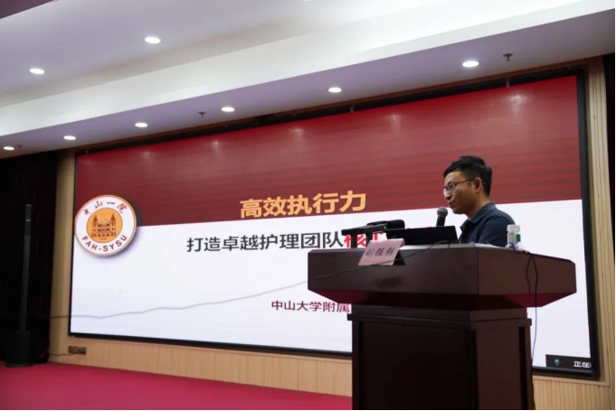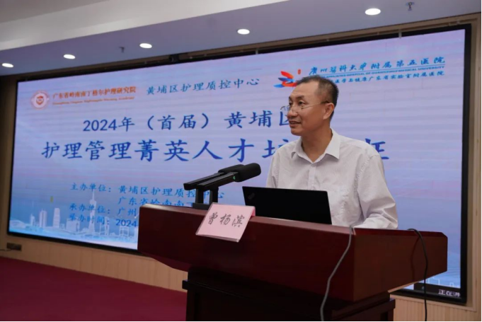广医五院党委书记曾杨滨出席活动并致辞,他回顾了黄埔区护理质量管理中心开展的工作及中心依托单位广医五院近年的护理工作成绩,充分肯定了护理管理者在医疗服务质量中的重要作用,强调了护理管理人才队伍建设在医疗体系中的关键作用,并寄语学员们通过此次培训进一步提升护理管理能力。