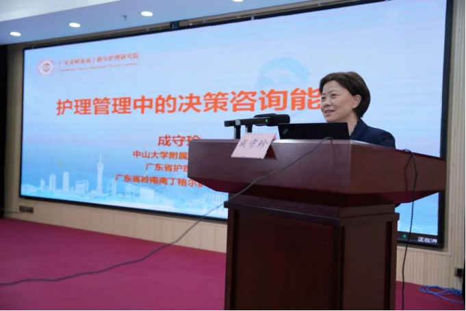 接着,第48届南丁格尔奖章获得者、广东省岭南南丁格尔护理研究院创始人成守珍院长介绍了研究院成立的背景及宗旨。本次培训班的课程设置旨在培养高层人才、实践高水平护理、高标准管理,围绕人才、技术、管理、服务四个方面进行拓展。