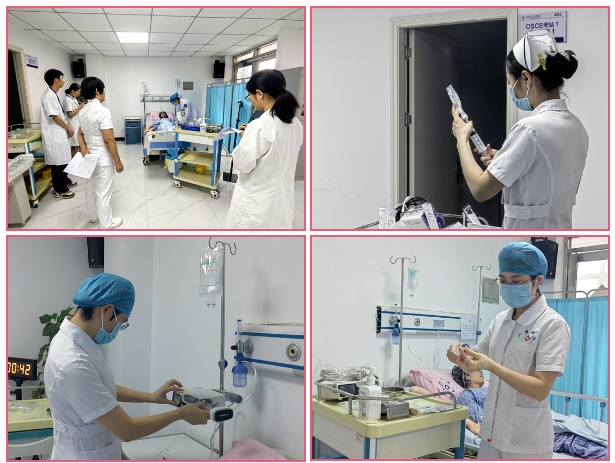 本次大赛参照省赛赛制,内容包括理论知识与技能操作两部分。技能操作比赛中,我们把临床病例搬到了赛场上,设置标准化病人和标准化医生,参赛选手根据患者所处的场景,作出最快的应急判断,采取相应的护理措施。