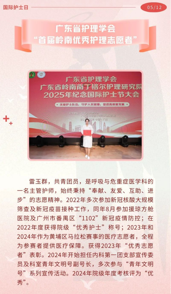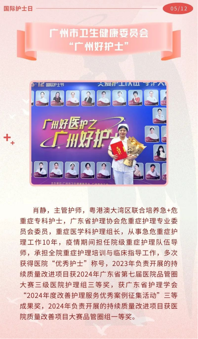 在第114个5・12国际护士节的暖风中,“护士:引领之声——护理世界健康”的主题熠熠生辉。在我们医院,也有这样一群杰出的护理工作者,他们用行动诠释着护理事业的神圣使命,用爱与责任守护着每一位患者的健康。