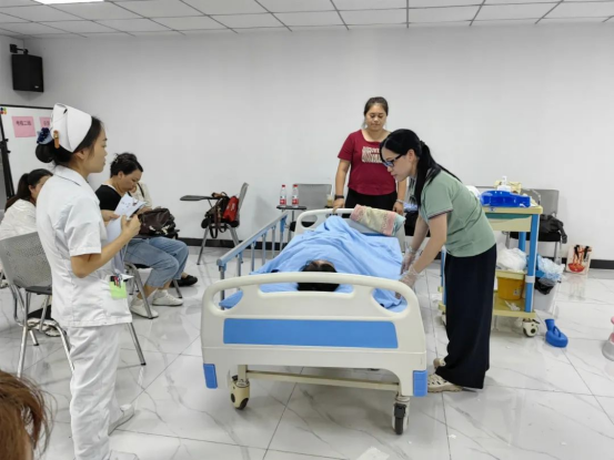 此次培训内容紧扣《医疗护理员国家职业标准2024年版》及临床实际需求,采用理论+实操、线上+线下的授课方式,讲授医疗护理员职业道德与行为规范、常见疾病基础照护知识、应急处理流程、正确翻身叩背、协助进食与排泄、清洁照护、功能锻炼等陪护知识。培训过程中,学员们认真聆听、积极互动,在模拟操作中反复练习,力求精准掌握每一项技能。