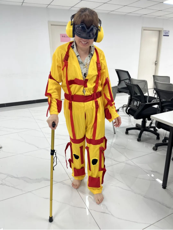 培训期间学员还体验了模拟老年人身体状态的老年体验服穿戴,感受老年人因身体技能衰退而面临的各种不便,增进对老年人的理解与关爱。