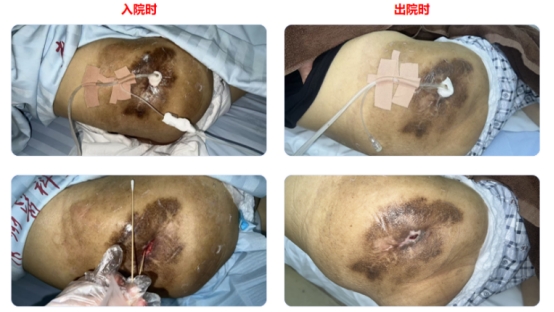 在治疗过程中,团队始终注重与患者和家属的情感沟通。医护患共同探讨,团队充分的讨论和循证,制定“一病一策”的护理方案,通过精准的医疗干预和细致的专科护理,患者病情逐步好转:神志转清,感染指标下降,心肾功能趋于稳定,全身水肿消退,多处伤口明显愈合,生命体征趋于稳定。