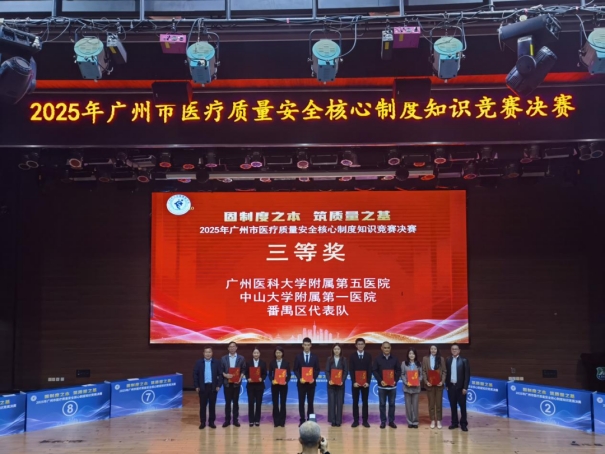 在刚刚落幕的“固制度之本 筑质量之基”2025年广州市医疗质量安全核心制度知识竞赛决赛中,我院代表队团结协作、沉着应战,最终从全市50家参赛医疗机构中脱颖而出,以总成绩第四名荣获大赛三等奖…