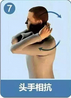 (5)加强颈部,颈部肌肉锻炼可增强,以下保健操也适用于颈椎病患者日常保健。