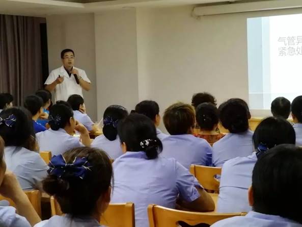 梁医生为大家讲解了出现误吸时的表现及正确有效的气道梗阻窒息抢救,现场还通过播放正常吞咽时食物从口腔进入食管的过程及一些误吸、呛咳等异常吞咽过程的视频,让护理人员对吞咽有了形象直观的印象。