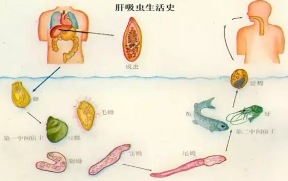 它的虫卵主要存活与于鱼塘内,第一宿主是螺,在螺中感染幼虫,然后感染🐟。
