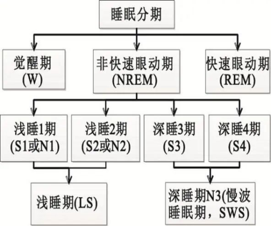 NREM又分四期:1-2期浅睡(占50%),3-4期深睡(占15%~25%),最后接REM做梦阶段。