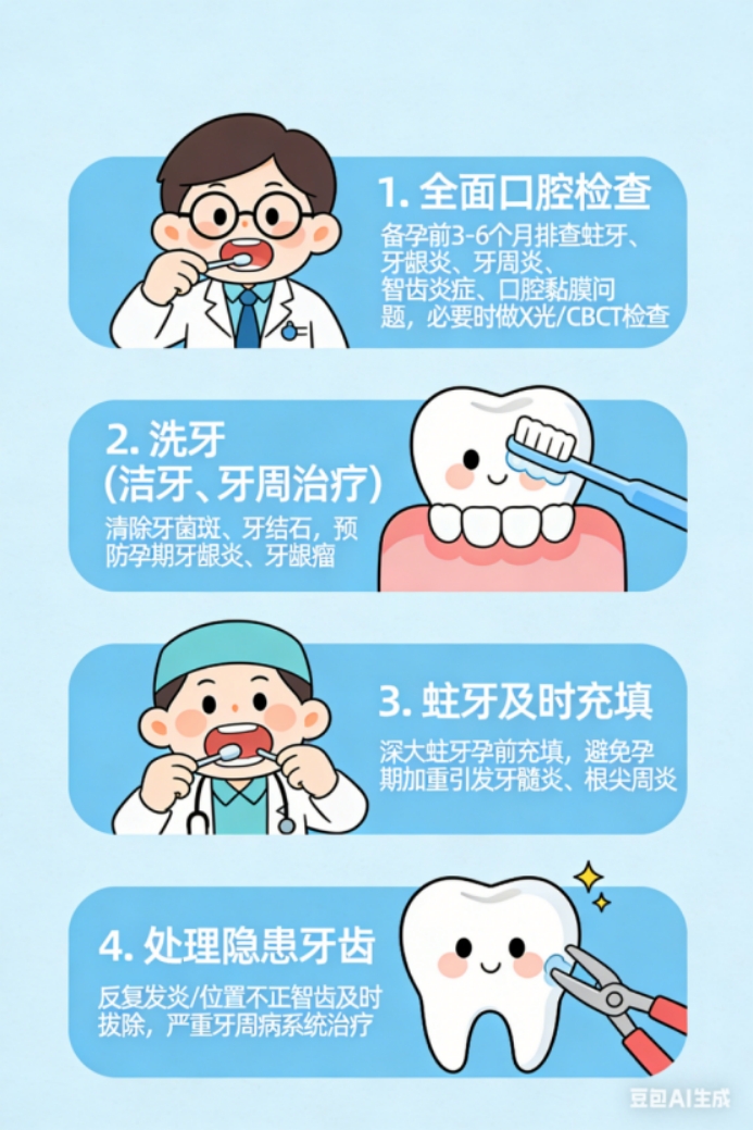 很多女性备孕时,会重点关注妇科检查、血常规、微量元素等项目,却忽略了口腔检查——殊不知,孕前做好口腔检查,及时处理口腔问题,是对自己和宝宝最负责任的选择,也是最划算的“备孕投资”。